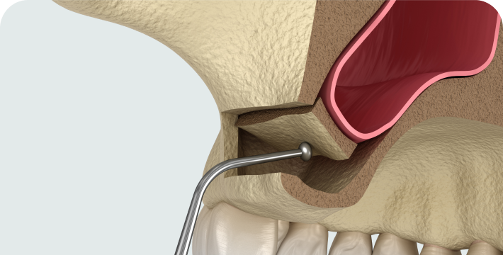 광대뼈 안쪽에 위치한 빈 공간인 상악동은 얇고 예민한 막이 붙어 있습니다. 이 막을 찢어지지 않게 들어올려 임플란트를 식립할 빈 공간을 확보하는 수술법을 상악동 거상술이라고 합니다.
